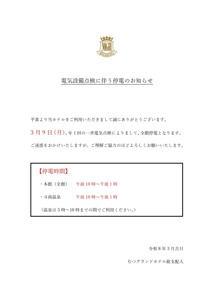 全館停電のお知らせ